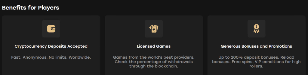 | Verified blockchain transparency for game fairness and transactions. | Fewer traditional Canadian payment methods (e.g., Interac) than some rivals. |